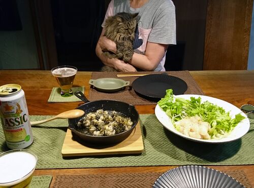 いただきます前夜の食材の残りを 帆立の塩麹サラダ 出し損ねたモンクールさんの具沢山スープ申し訳ないほど、美味しいです ごちそうさまでした