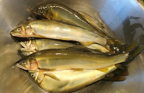 ご近所さんからお裾分けいただいたアユです!初めて調理する妻はネット検索で情報を収集・分析して 4匹を 塩焼きに そして6匹をコンフィに この日は白糠で揚がったブリを購入していたので そのお刺身もいっしょに いただきます 定番の塩焼きは う~ん、塩焼…