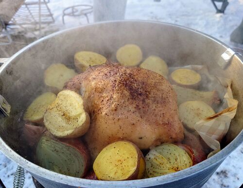 今年のイヴも鶴居村の友人宅にお呼ばれして、ダッチオーヴンのチキンをごちそうに 松原農園のスパークリングワインで乾杯! 見るからに旨そうに焼かれた丸鶏です クリスマスらしい豪華なテーブルチキンと一緒に焼いた野菜がまたすこぶる美味しい ロールキャ…