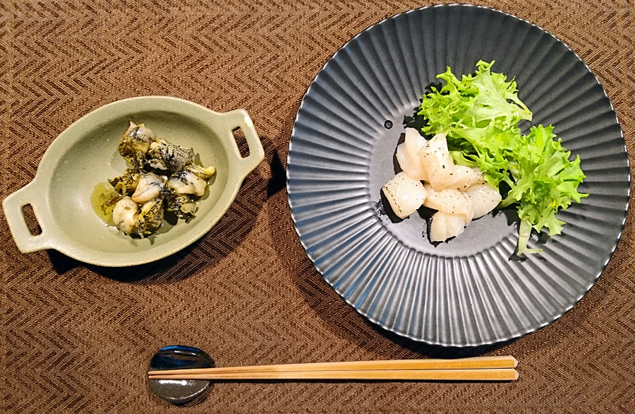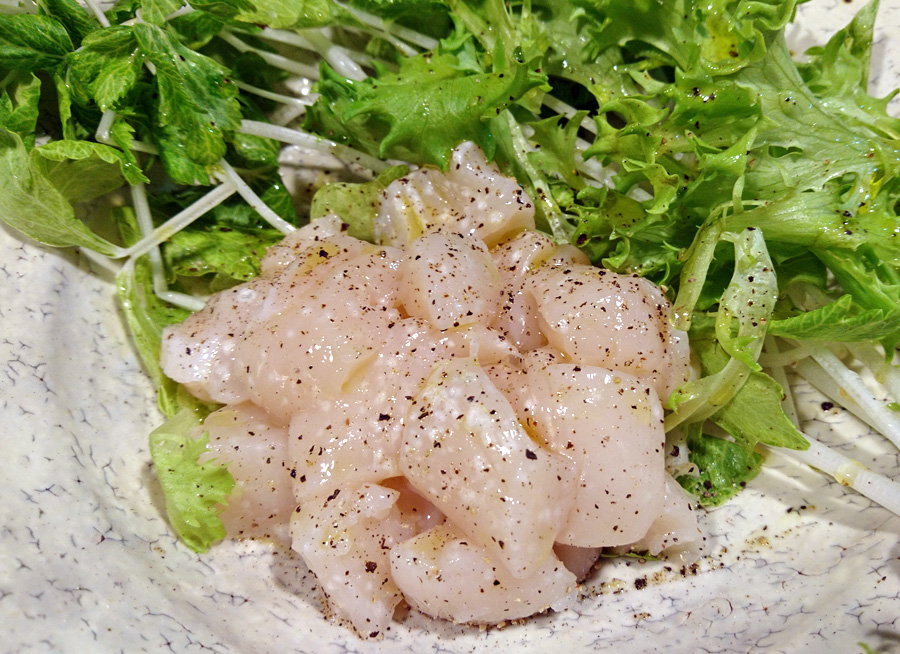 いただきます前夜の食材の残りを 帆立の塩麹サラダ